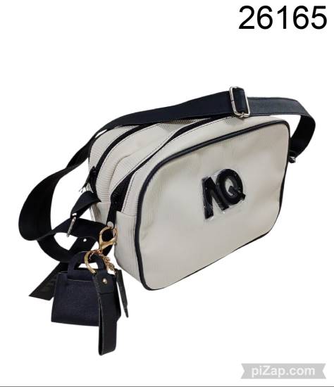 BANDOLERA ECOCUERO RAYADO C/DOS COMPART NEGRA Y HUESO 4.26