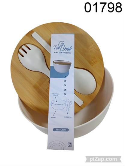 ENSALADERA CON TAPA DE BAMBOO Y CUBIERTOS 25X11.2CM 3.26