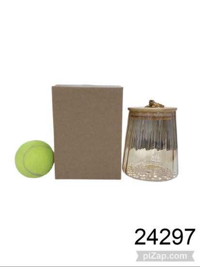 FRASCO DE VIDRIO RAYAS C/TAPA HERMETICA DE MADERA 12X 9CM 4.25