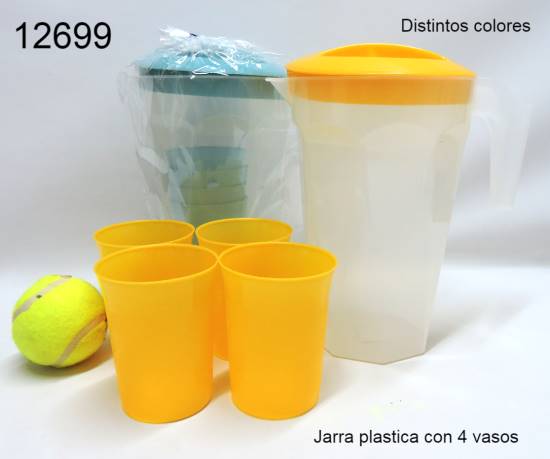 JARRA PLASTICA MAS 4 VASOS TAPA COLOR 12.25