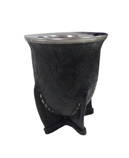 MATE CAMIONERO CUERO FLOR C/VIROLA ACERO 6.25