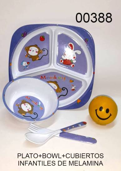 PLATO+BOWL+CUBIERTOS INFANTILES DE MELAMINA 1.25