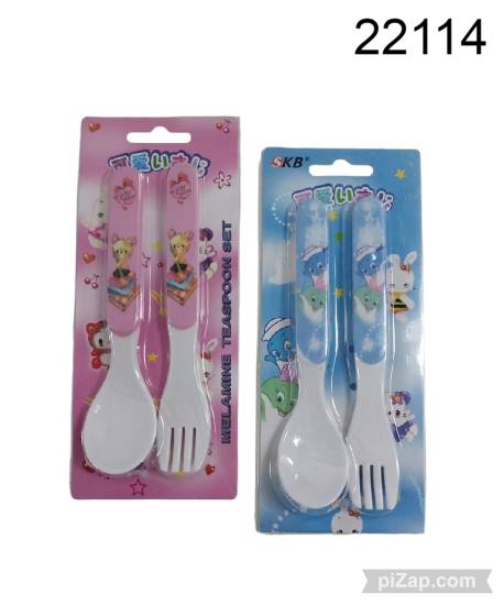 SET DE CUBIERTOS MELAMINA X2 P/BEBE ROSA Y CELESTE 1.25