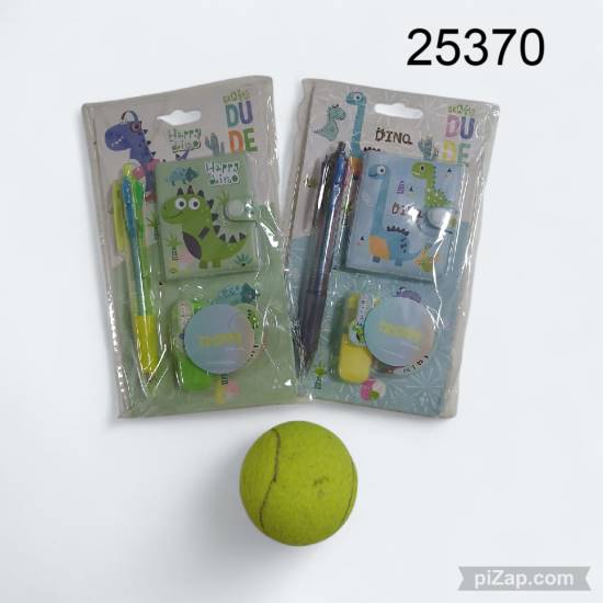 SET X4 PIEZAS DINO (LAPICERA, AGENDA, FIBRON, CINTA) TRENDY 10.25